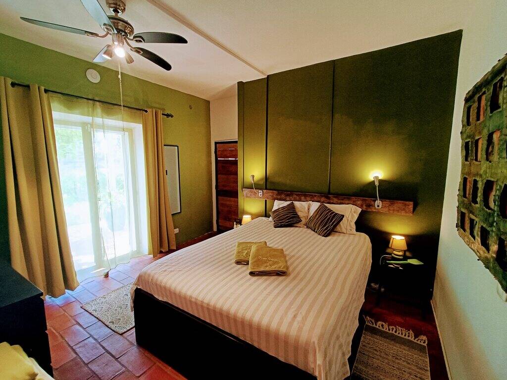 De bungalow heeft een lang overdekt terras met een wijde blik over de vallei een directe toegang tot de tropische tuin en de leuke buitenbar.
